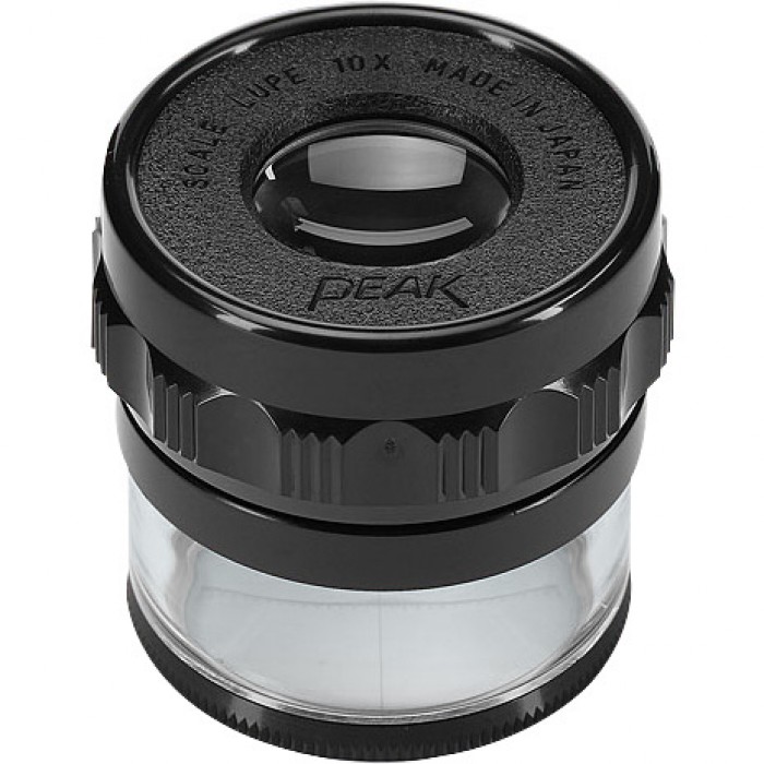 Peak Scale Loupe 10X has precision-constructed achromatic lenses (coated 4 elements, 2 groups), a photo-printed scale and focusing ring.